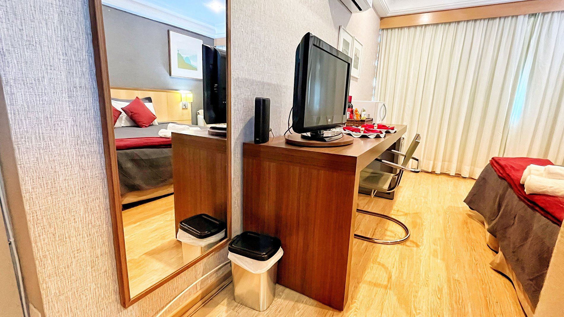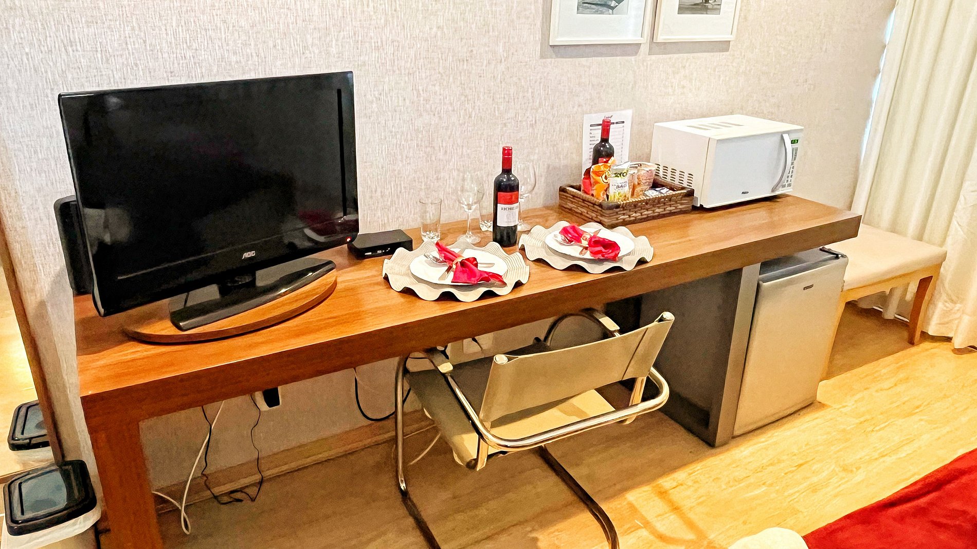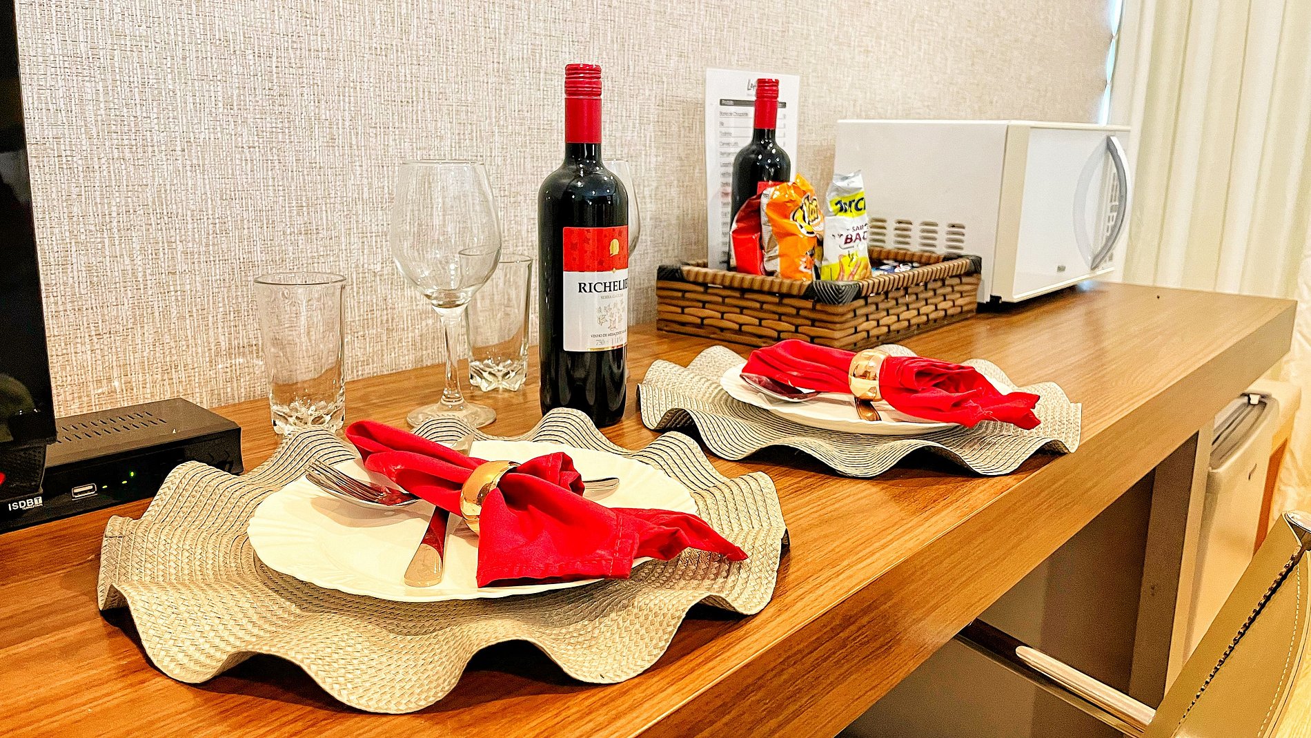 - No apartamento você terá ampla cama de casal King Size que pode se tornar 2 camas de solteiro conforme sua necessidade com colchões extremamente confortáveis, TV Full HD, ar condicionado, Internet Wi-Fi, frigobar, microondas, pratos, talheres, copos e taças, banheiro privativo e linda vista para o Mar. - Serviço de arrumação Gratis no Apartamento em dias alternados.