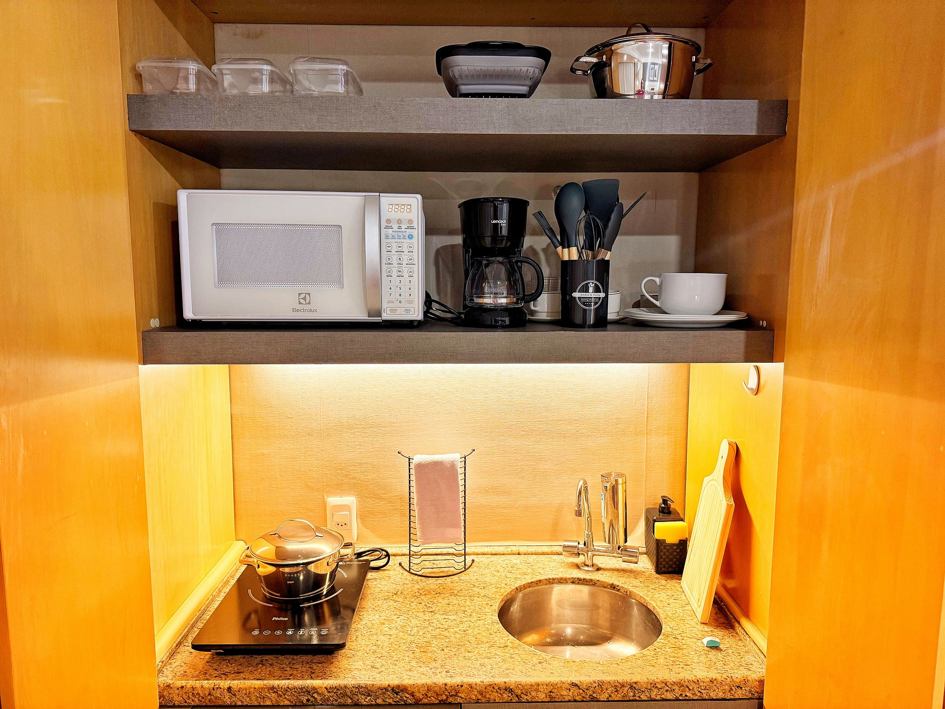 O apto correspondia exatamente às fotos e à descrição. Estava bem limpo, com tudo funcionando muito bem. Apto confortável e bem decorado. Mercadinho do condomínio 24h com autoatendimento é bastante útil! No restaurante tomamos um café da manhã bem gostoso e com preço justo. Não utilizei mais nada da estrutura do condomínio, pois minha estadia foi mais para passar a noite mesmo. E ainda pegamos dias de chuva. Mas tudo parecia funcionar muito bem. A piscina é bem bonita.