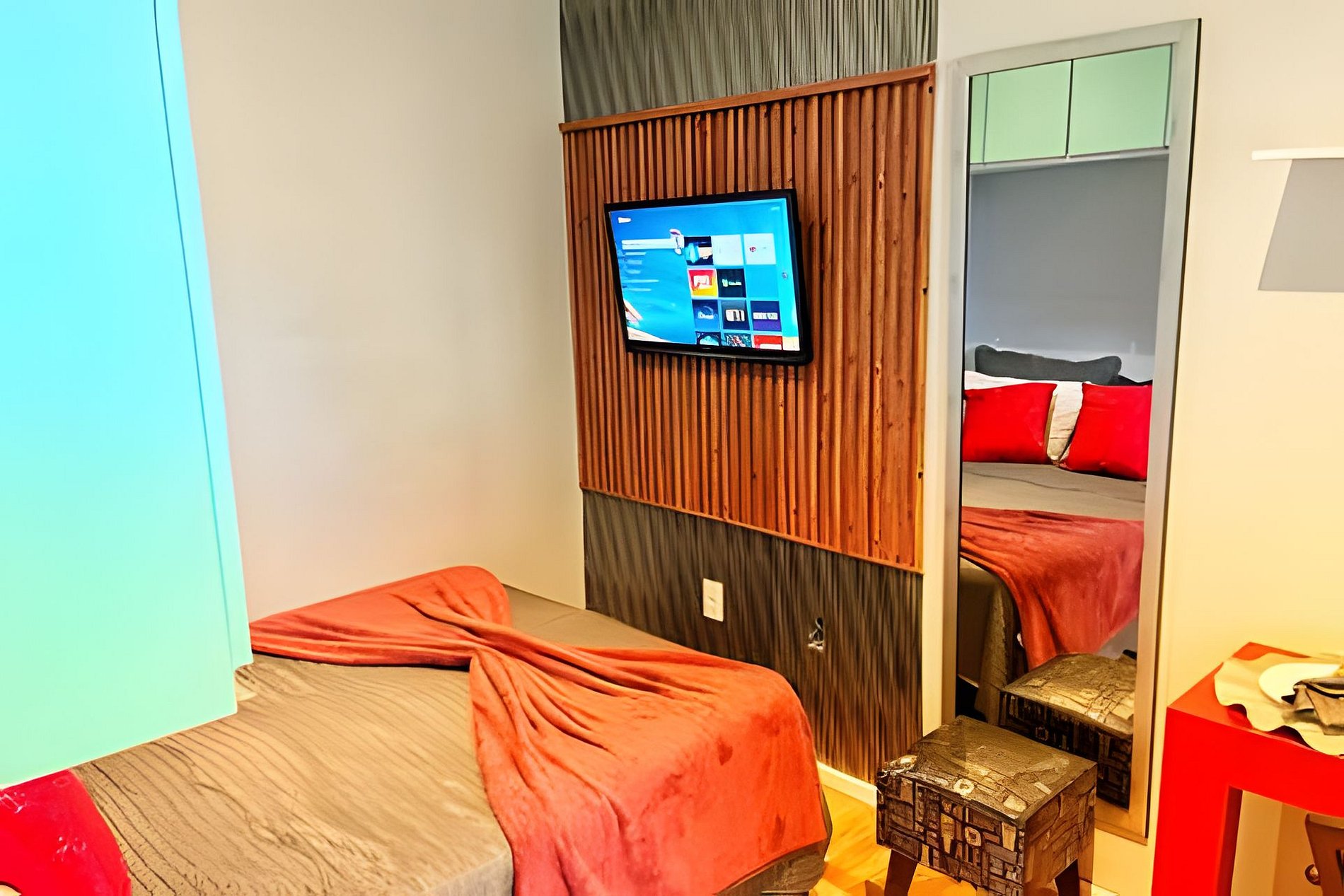 Piso totalmente reformado con alto nivel de materiales y acabados, finamente decorado, baño íntegramente en porcelanato, cocina completa con sobres de mármol, cocina de inducción, minibar, microondas, sartenes y utensilios de cocina. Amplios armarios, zona de comedor, cama de matrimonio, ropa de cama y baño completa. Smart TV con NetFlix, Globo Play, YouTube y canales abiertos, Internet Banda Ancha. Todo el confort del aire acondicionado para los días más calurosos.