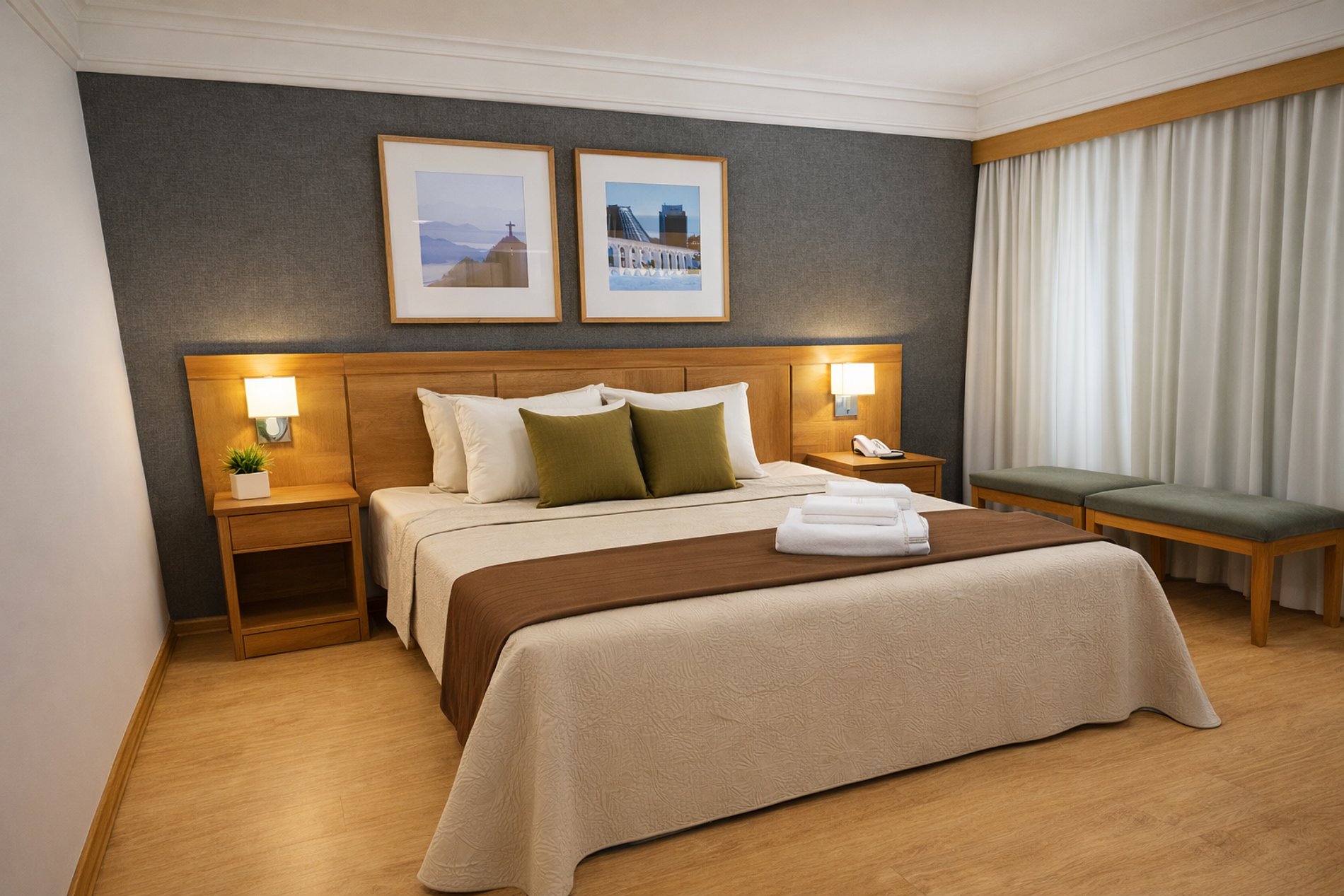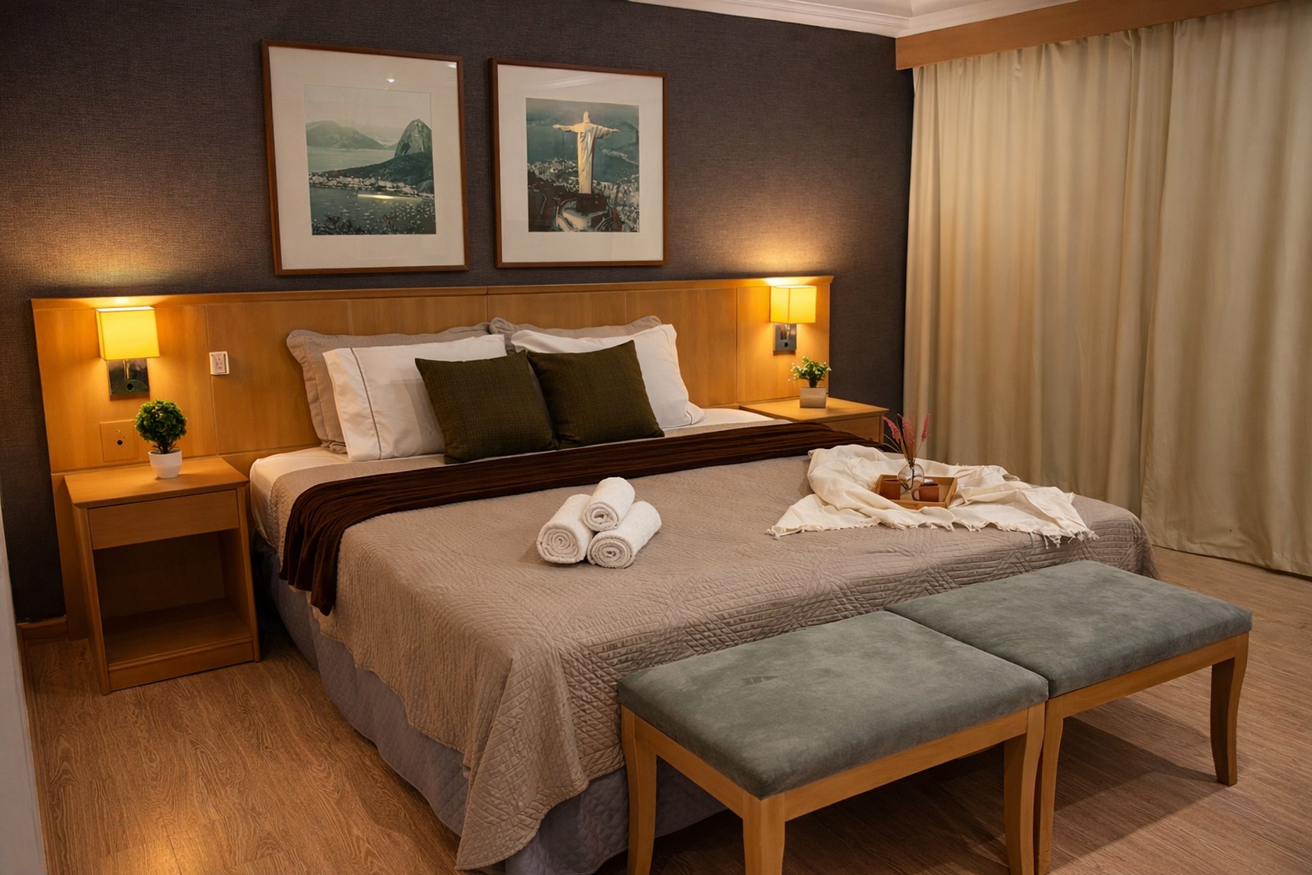 Es necesario completar un formulario con los datos de todos los huéspedes, así como el envío de documentos y verificación facial para que se emita la autorización de check-in. - Siga las normas de higiene del condominio, prestando atención a las áreas comunes que estén habilitadas, ascensores, eliminación de basura, entre otros. - No se permiten fiestas ni ruidos excesivos; respete la ley del silencio, ruidos permitidos solo hasta las 22:00. - Como cortesía, dejaremos algunos artículos de higiene personal para los primeros días; si es necesario, hay un minimercado en la planta baja que vende todos estos artículos. - Ofrecemos ropa de cama y toallas completas pero no realizamos cambios; si necesita artículos nuevos, el anfitrión le proporcionará el valor de cada uno, o si lo prefiere, hay una lavandería de autoservicio 24 horas en el sótano (servicio de pago). - Algunos maquillajes, bronceadores o protectores solares dejan manchas permanentes en las toallas que no salen con el lavado; por favor, tenga cuidado de no mancharlas, de lo contrario se cobrará el valor de una pieza nueva. - En apartamentos con cama individual para un tercer huésped, dejamos un kit de ropa de cama extra en el armario para mayor comodidad. Este kit está incluido solo cuando la reserva contempla el pago del tercer huésped. De lo contrario, el uso de la ropa de cama adicional tiene un cargo de R