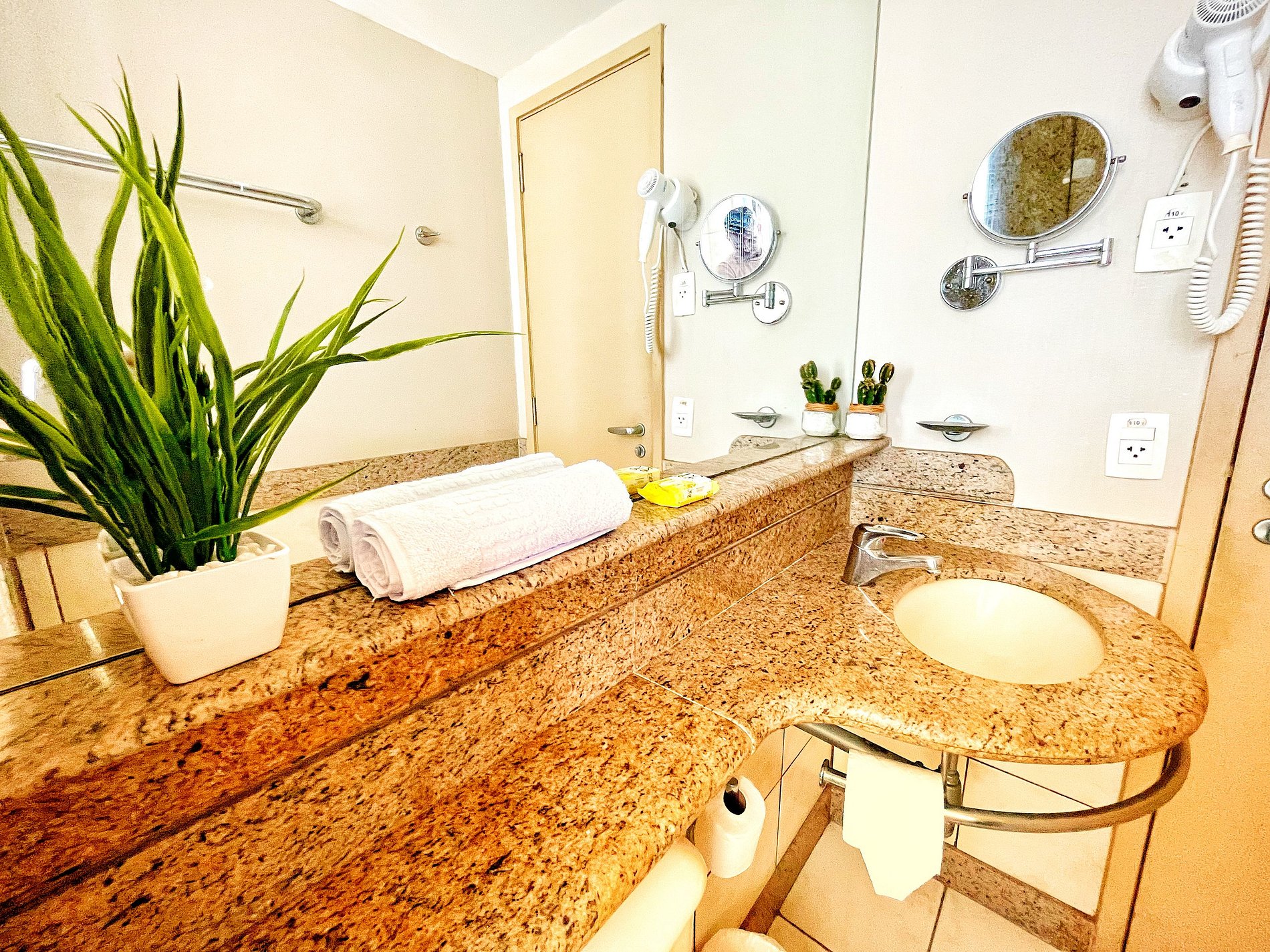 A acomodação é exatamente como o anúncio. Gostamos muito da nossa estadia, quarto grande, confortável e com uma vista linda. O prédio cheio de facilites, se vc não quiser nem precisa sair pra comer, eles tem um restaurante e café no pav. Térreo. Amamos a sauna seca, fizemos todos os dias. O anfitrião nos respondeu com rapidez e cordialidade. Nota 10!
