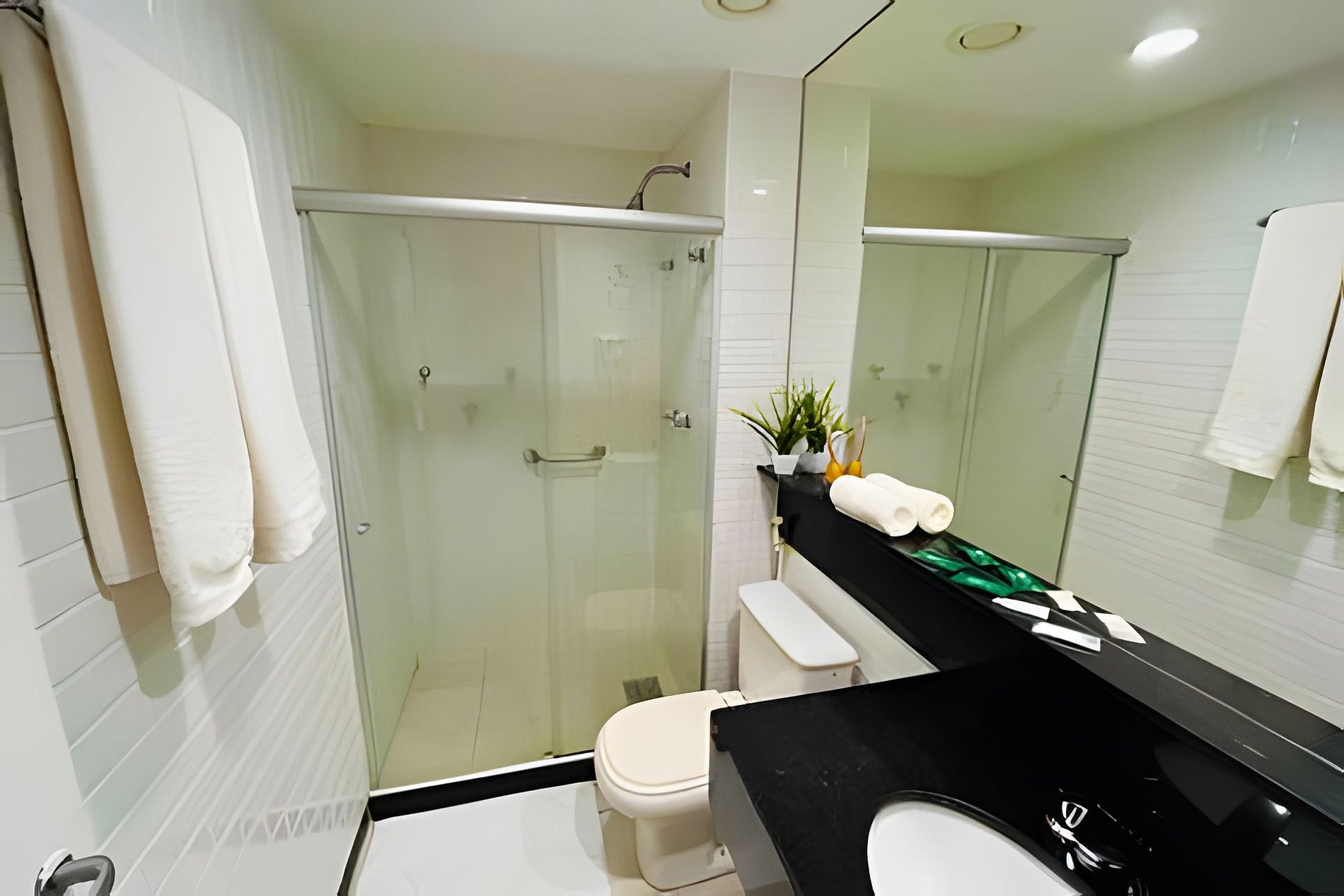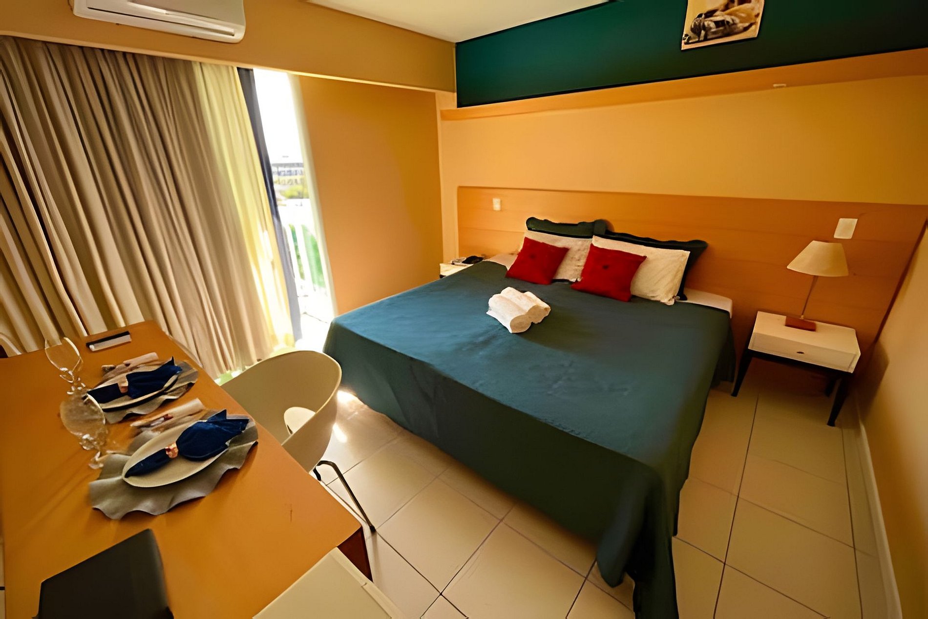 - No apartamento você terá ampla cama de casal King Size que pode se tornar 2 camas de solteiro conforme sua necessidade, com colchões extremamente confortáveis, TV Full HD 32" com TV a cabo, ar condicionado, Internet fibra ótica ultra veloz ( exclusiva do apartamento) frigobar, microondas, pratos, talheres, copos e taças, banheiro privativo e varanda com linda vista com 1 mesa e 2 cadeiras. - Serviço de arrumação do Apartamento em dias alternados.