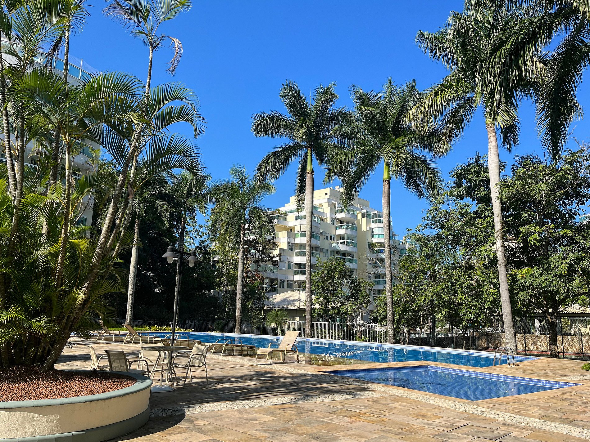 Tú y tus acompañantes tendréis acceso a un ocio completo con: - Enorme piscina que hace las delicias de todos por su tamaño, piscina infantil para que tus hijos se diviertan sin riesgo de accidentes, piscina de hidromasaje (en funcionamiento). - Un hermoso sauna húmedo y seco para que disfrutes de momentos increíbles. - Acceso GRATUITO al ferry que te lleva a la playa (a solo 1 minuto cruzando la laguna, que es un espectáculo en sí mismo, estarás en la parte más calurosa de Barra da Tijuca, entre las estaciones 2 y 3, y a 2 minutos de Praia do Pepê frente al Hotel Windsor (no te sorprendas si hay artistas, futbolistas y celebridades a tu lado en la arena, ya que este tramo es bastante peculiar. - Gimnasio si no renuncias a cuidar tu salud y mantener tu forma al día - Un área de oficina con internet Wi-Fi y por cable, con una hermosa mesa disponible para tu uso cerca de la recepción - Tienda de comestibles con todo lo necesario como vinos, cervezas, refrescos,. comidas rápidas congeladas, helados, productos de higiene y limpieza - Restaurante con platos variados con precios desde R$ 23,00 - Lavado y secado de ropa a precio súper asequible.