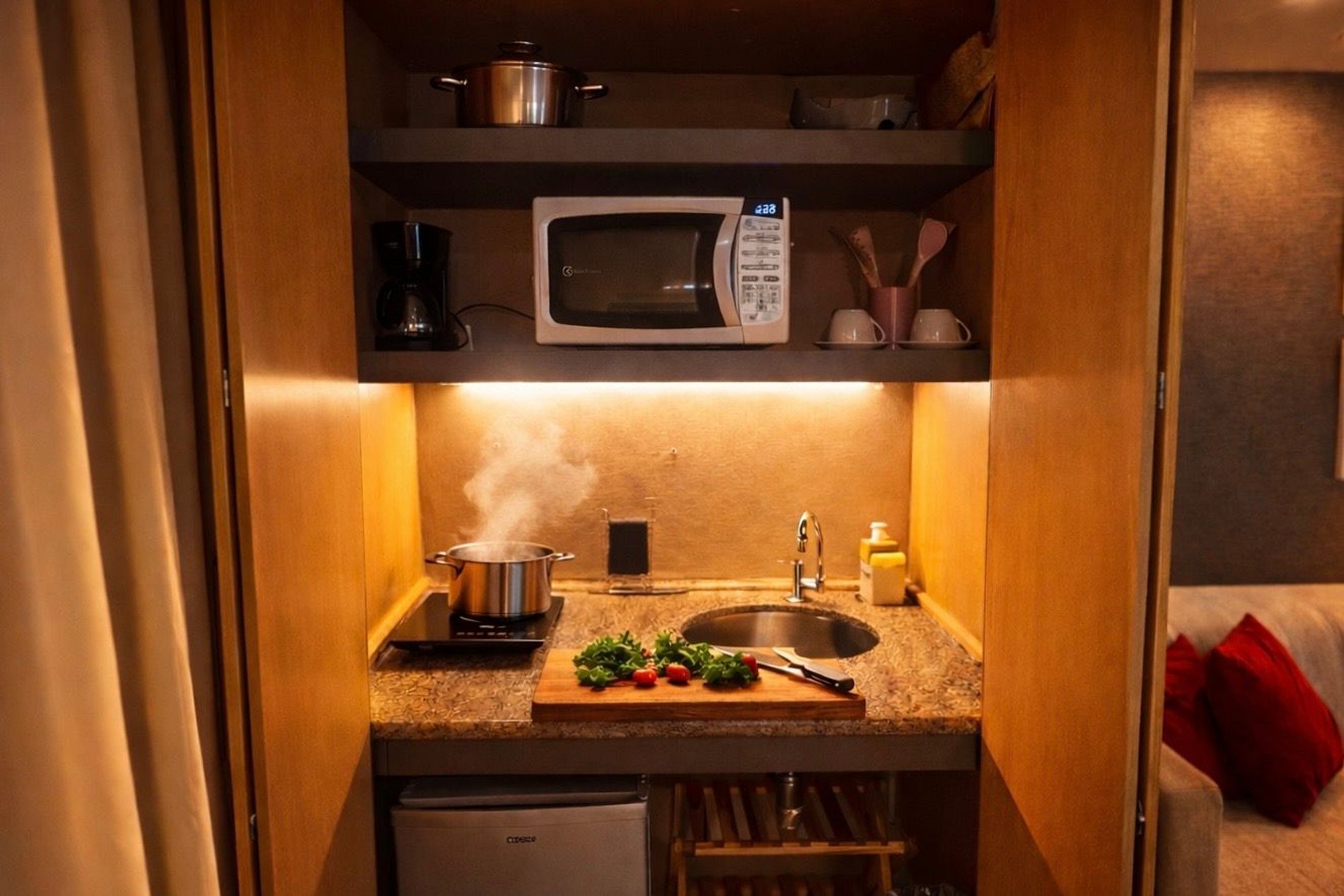 O apto correspondia exatamente às fotos e à descrição. Estava bem limpo, com tudo funcionando muito bem. Apto confortável e bem decorado. Mercadinho do condomínio 24h com autoatendimento é bastante útil! No restaurante tomamos um café da manhã bem gostoso e com preço justo. Não utilizei mais nada da estrutura do condomínio, pois minha estadia foi mais para passar a noite mesmo. E ainda pegamos dias de chuva. Mas tudo parecia funcionar muito bem. A piscina é bem bonita.